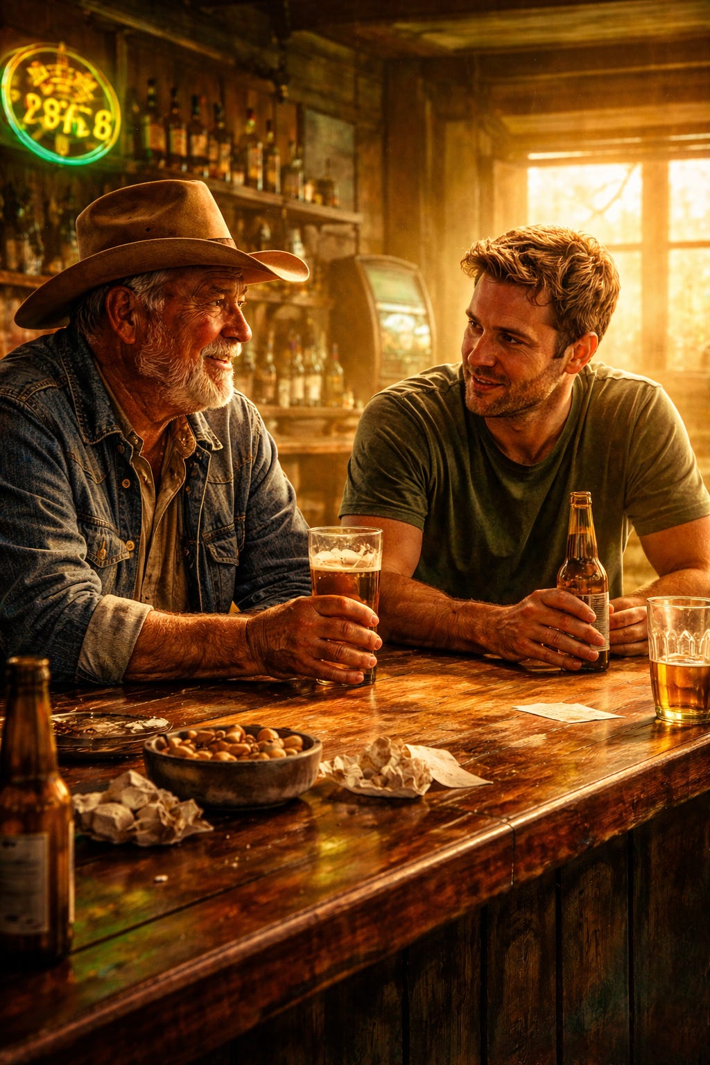 Next to me was an old man with a cowboy hat and a jacket that had seen better days. He did not look like the kind of guy who drinks to forget. He looked like the kind of guy who drinks to remember.