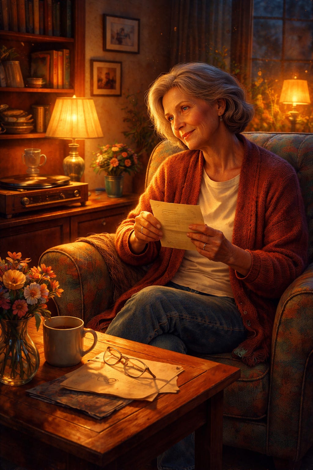 Not every night. Only on the nights when Eleni opened the table drawer and took out the letter. Then the air changed. The smell of coffee stayed the same, bitter and familiar, the lamp in the corner threw the same orange light over the rug, the television played softly without anyone really watching it, and yet the room gathered a man again, a man who had been gone for five years.